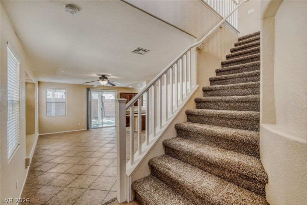 Stunning home located in the highly desirable community of Mountains Edge, known for its premier parks, scenic trails, top-rated schools, and vibrant recreation. The thoughtfully designed floor plan features an open-concept kitchen and living area, perfect for everyday living and entertaining, along with a dedicated dining space that adds function and flexibility. Upstairs, a versatile split loft provides additional living space ? ideal for a media room, home office, or private retreat. The upper level also features lightly lived-in carpet, recently painted house throughout, well-maintained feel throughout. The spacious primary suite is filled with natural light, creating a bright and relaxing atmosphere. The primary bathroom showcases a beautifully upgraded custom walk-in shower, adding a touch of luxury to your daily routine. Step outside to a fully landscaped backyard complete with a covered patio and a separate dog run.